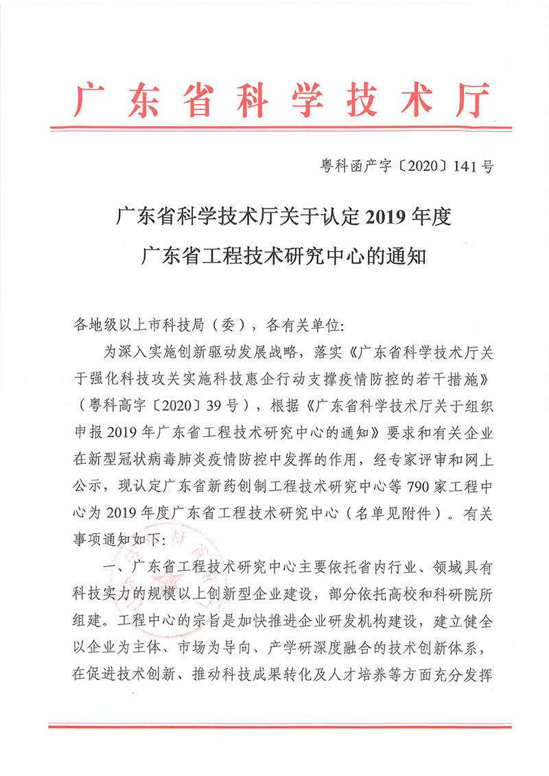 廣東力豐機械制造有限公司于2019年認定為廣東省工程技術研究中心